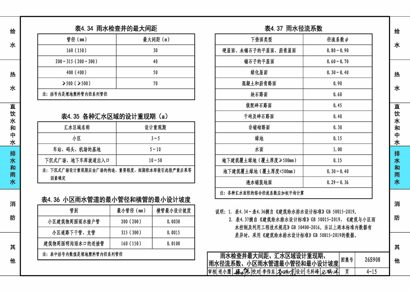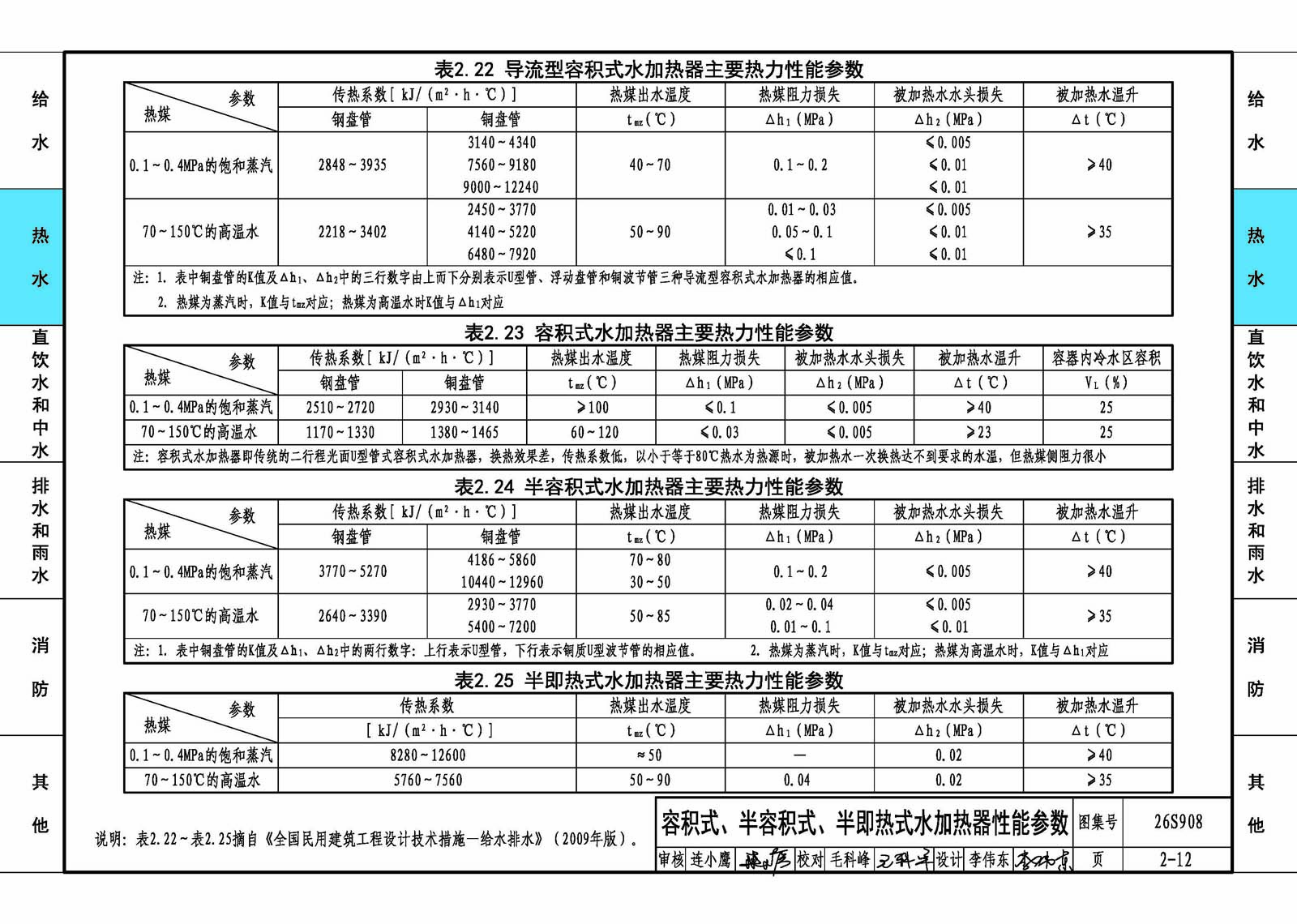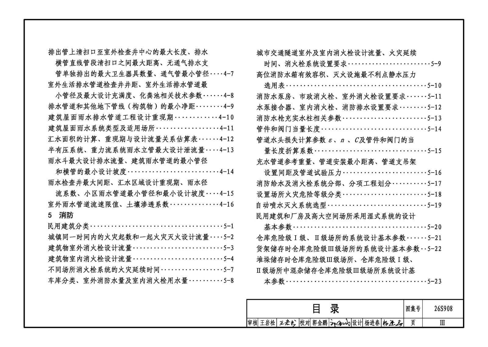 本图集适用于民用建筑和一般工业建筑的建筑给水排水工程设计、施工安装及验收。 主要内容包括:给水系统、热水系统、直饮水系统、中水系统、排水系统、雨水系统、消火栓系统、自动灭火系统、灭火器、人防工程及单位换算等建筑给水排水常用数据和参数。