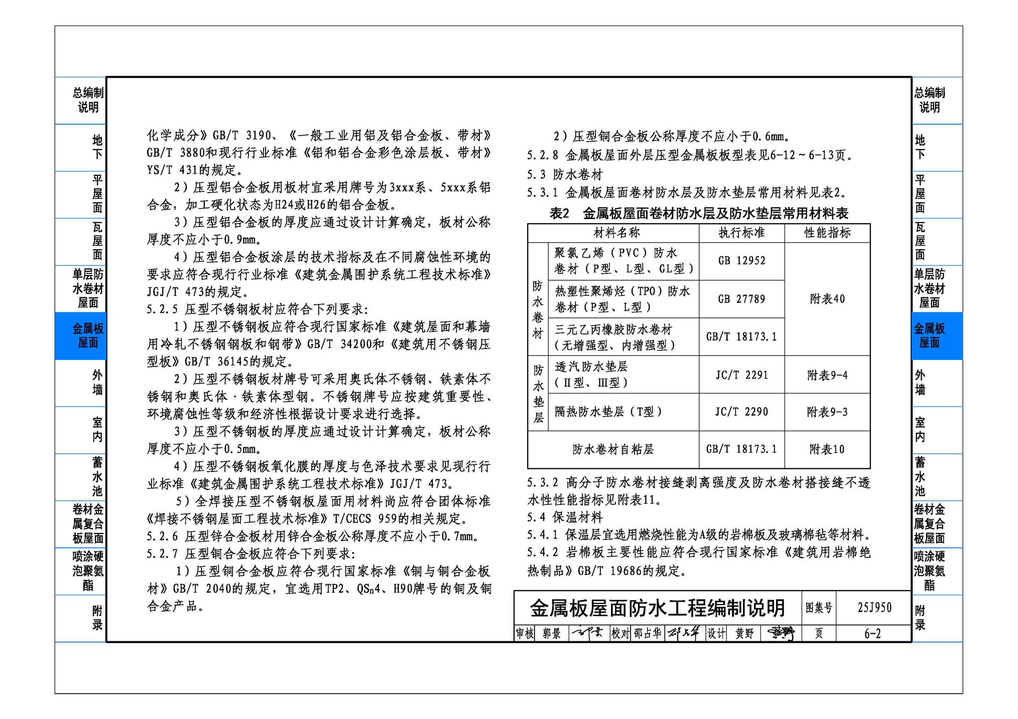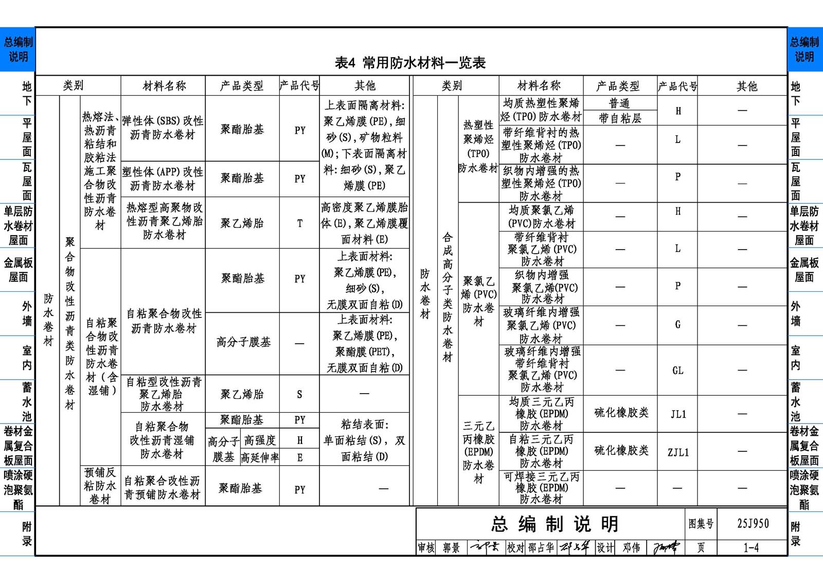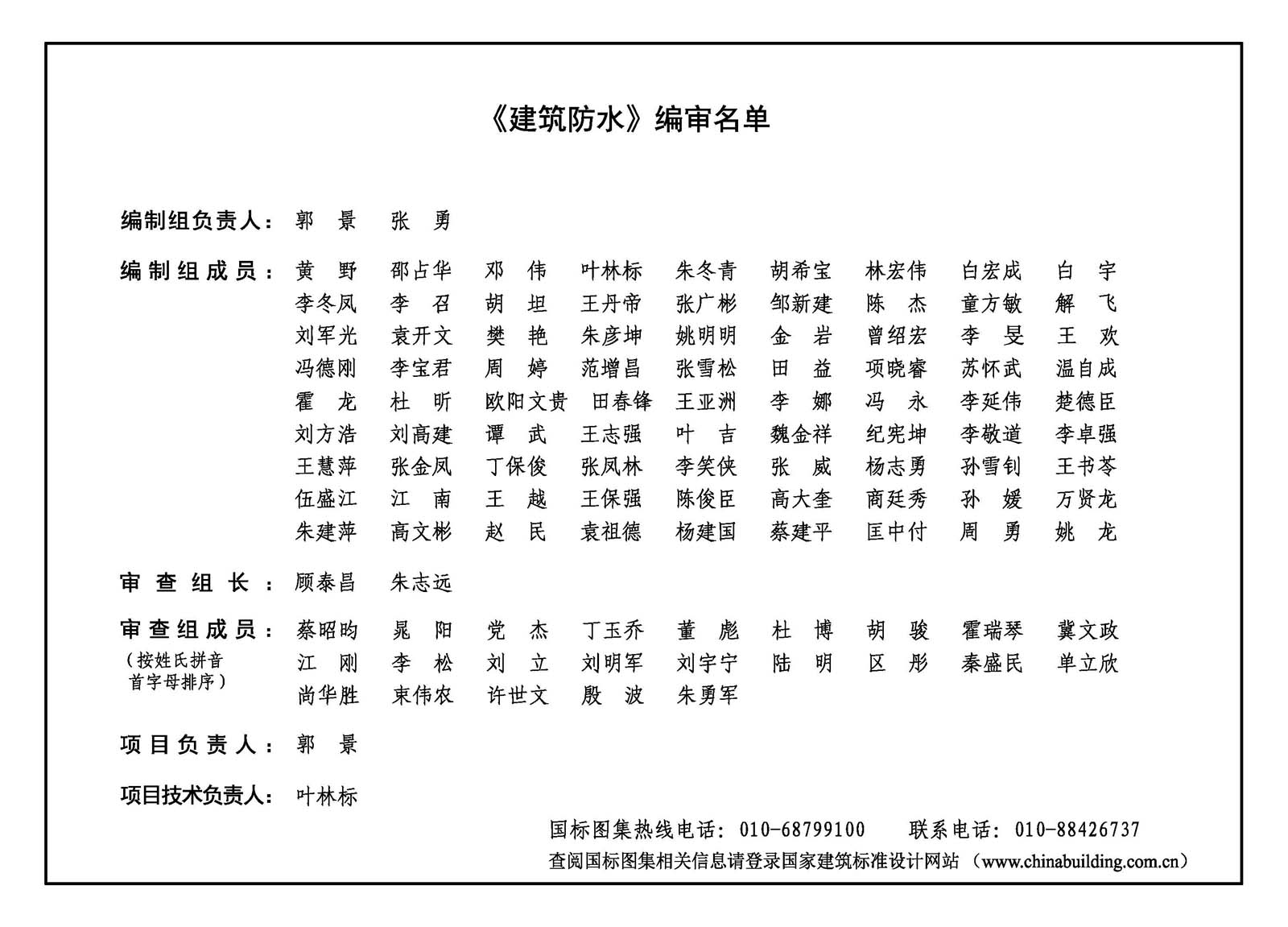 图集依据工程建设强制性国家规范《建筑与市政工程防水通用规范》GB 55030-2022编制,适用于建筑与地下市政工程的防水设计。主要包括建筑与市政地下工程,建筑平屋面、瓦屋面、种植屋面、单层防水卷材屋面、金属板屋面、高分子卷材金属复合压型板屋面、外墙、室内、混凝土蓄水池的防水技术;各部位适宜的常用防水材料主要性能及防水构造选用表,设计、施工、验收技术要点及常用、典型防水构造详图;供设计、施工、验收、监理选用或参考。