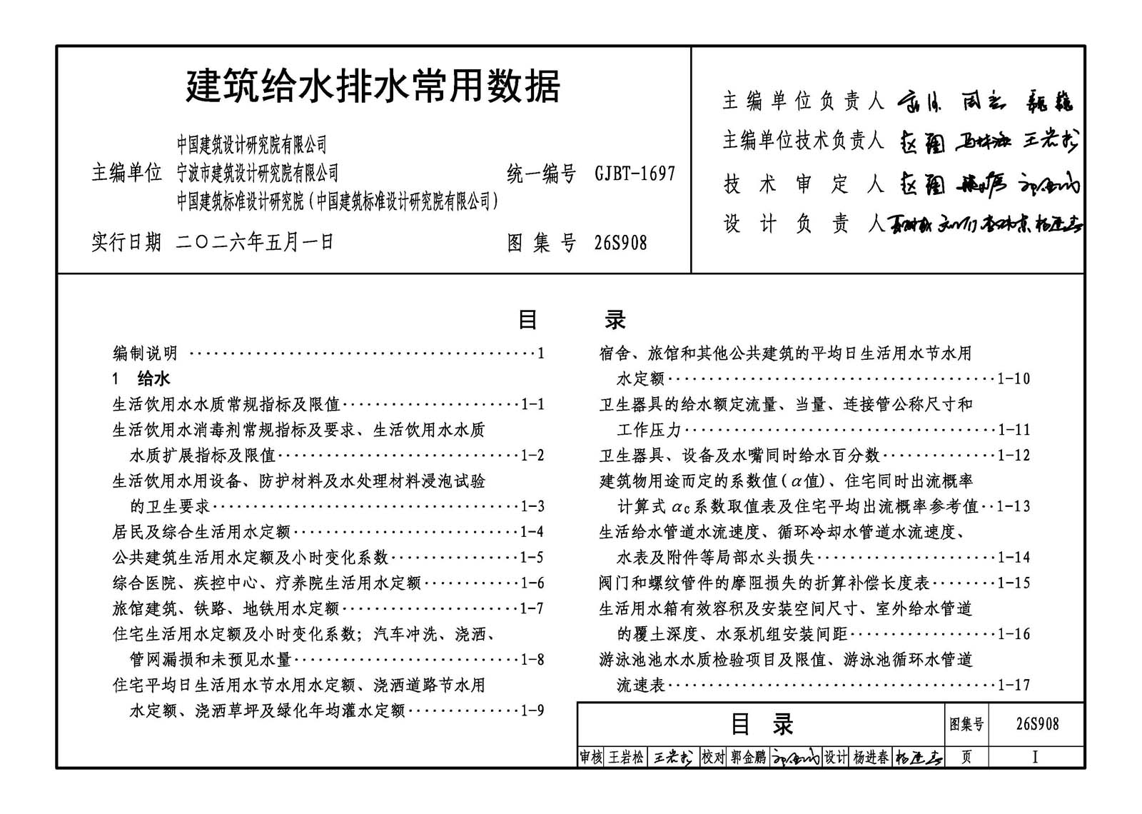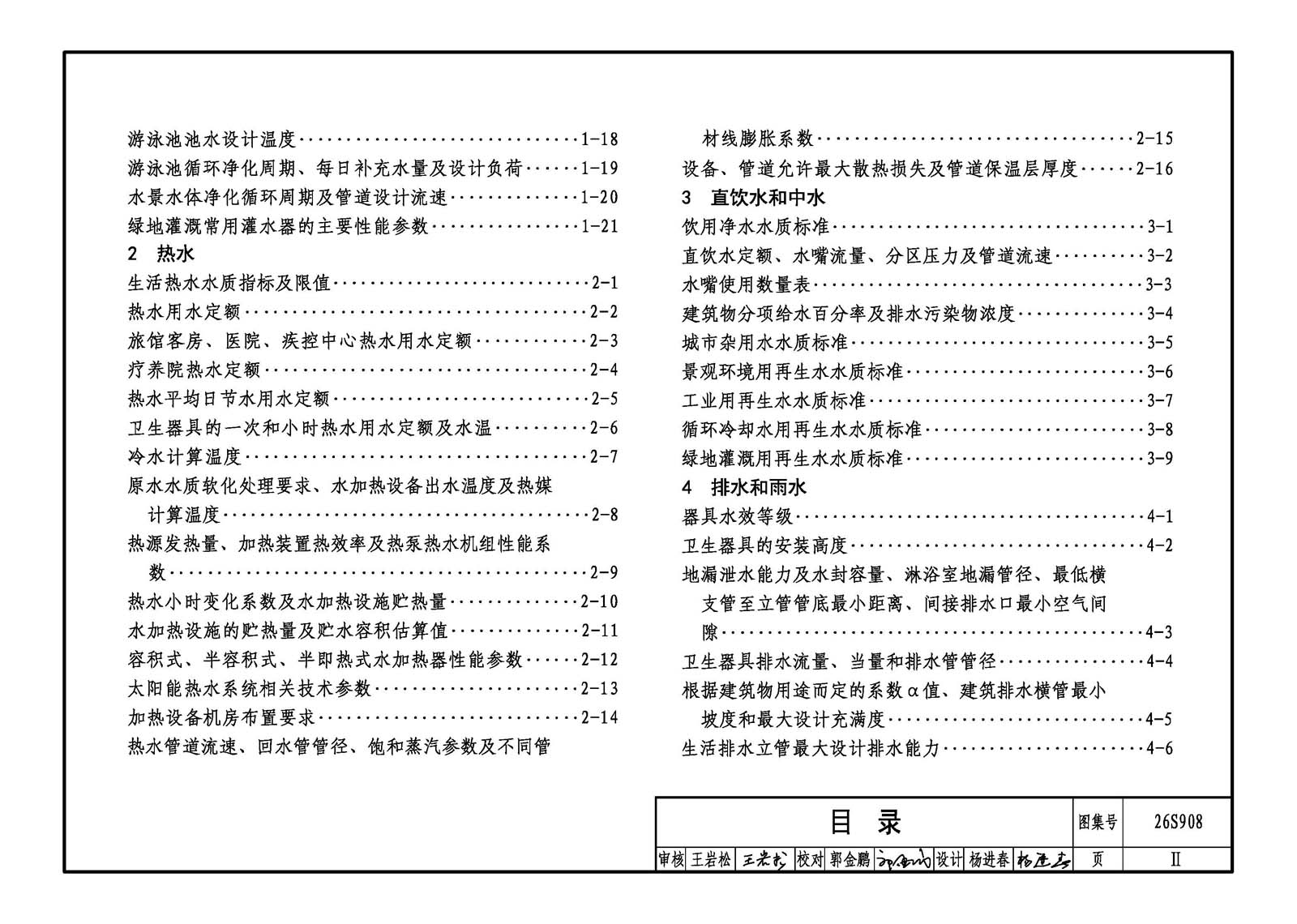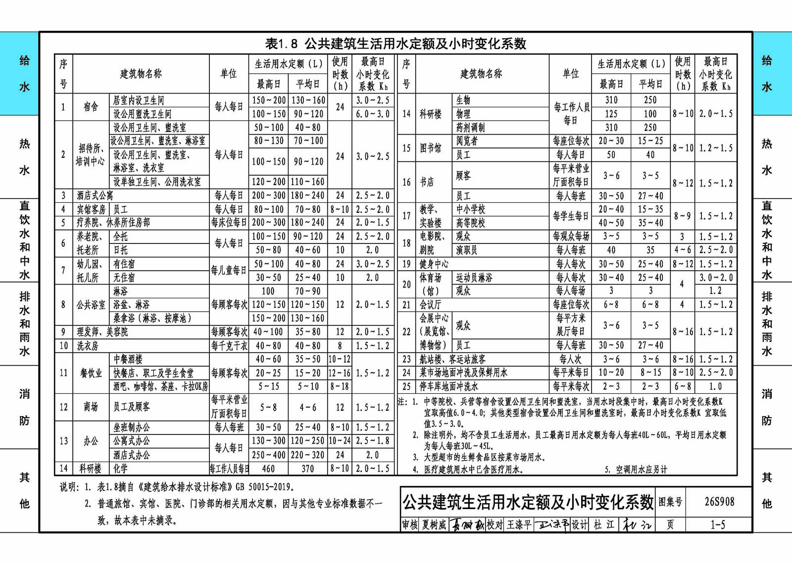 本图集适用于民用建筑和一般工业建筑的建筑给水排水工程设计、施工安装及验收。 主要内容包括:给水系统、热水系统、直饮水系统、中水系统、排水系统、雨水系统、消火栓系统、自动灭火系统、灭火器、人防工程及单位换算等建筑给水排水常用数据和参数。